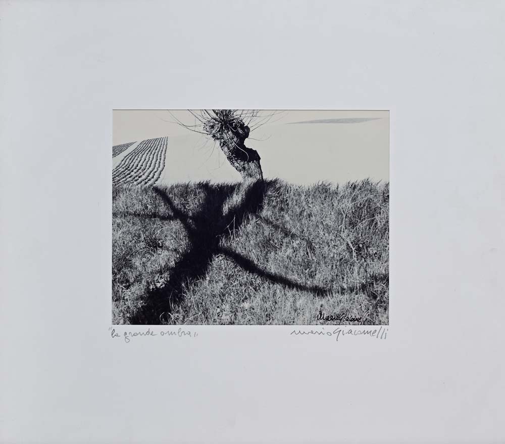 La grande ombra Firma in basso a destra "Mario Giacomelli". Firma e titolo a matita sul passepartout "Mario Giacomelli, La grande ombra" Stampa fotografica alla gelatina ai sali d'argento cm 20,4x25,6 - in cornice cm 44,5x48,5