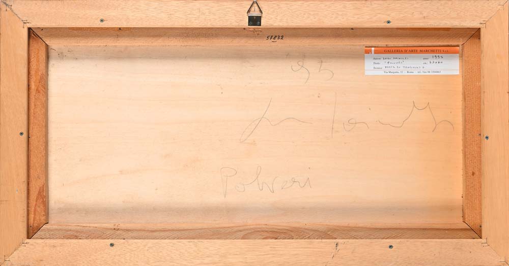 Polveri 1995 Firma, titolo e data al verso "Luigi Mainolfi '95, Polveri". Etichetta della Galleria d'Arte Marchetti, Roma Tecnica mista su tavola cm 30x60 - in cornice cm 33x63