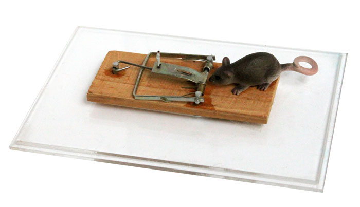 FRANCESCO DE MOLFETTA Garbagnate Milanese (MI) 1979 TRAPPOLA PER TOPI 2004 Tecnica mista entro teca in plexiglass 13x18x4 Certificato di autenticità