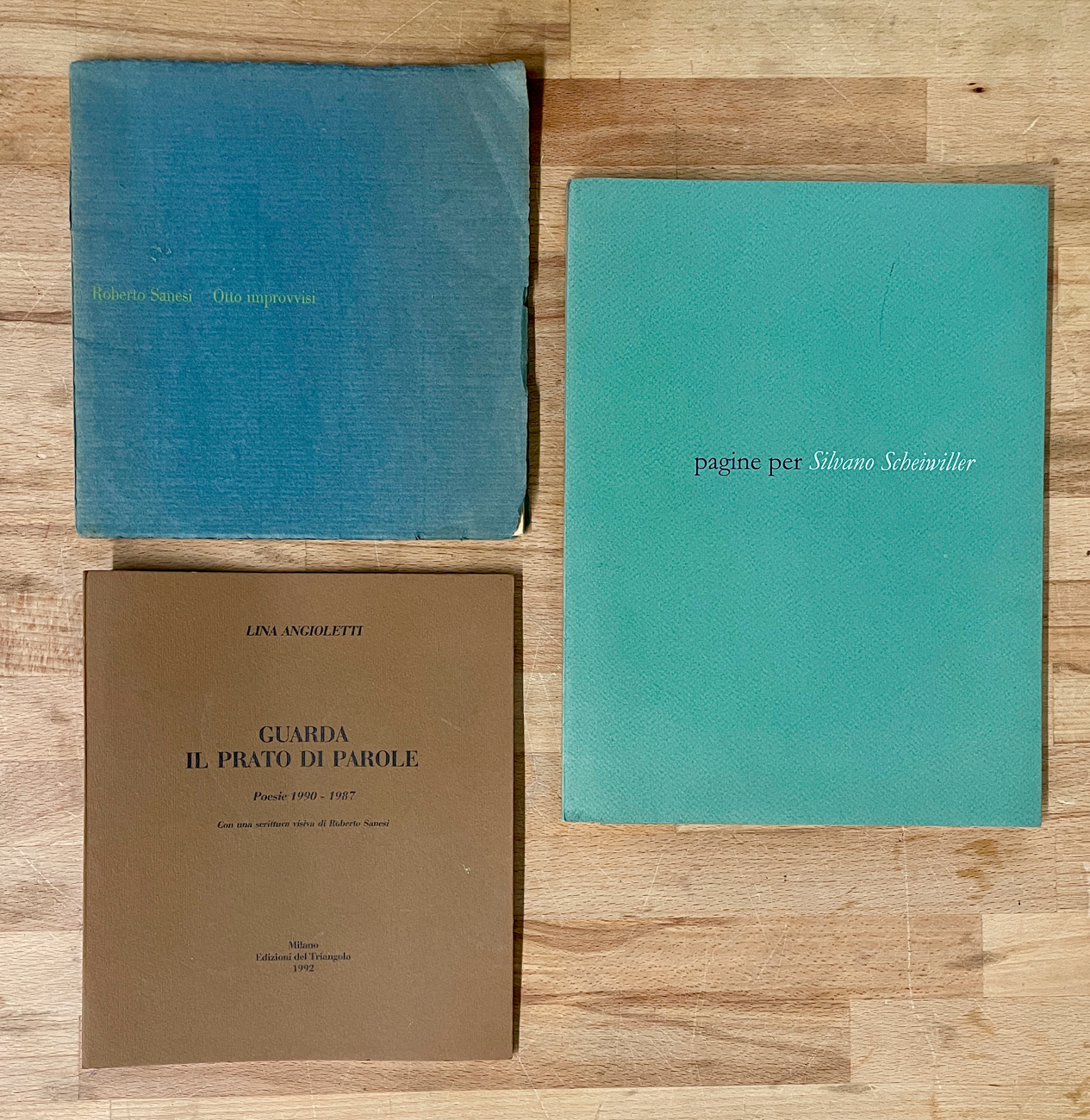 - Lina Angioletti. Guarda il prato di parole. Poesie 1990-1987, 1992 (poesie di Lina Angioletti illustrate da riproduzioni di opere di Roberto Sanesi; Edizioni del Triangolo, Milano)
