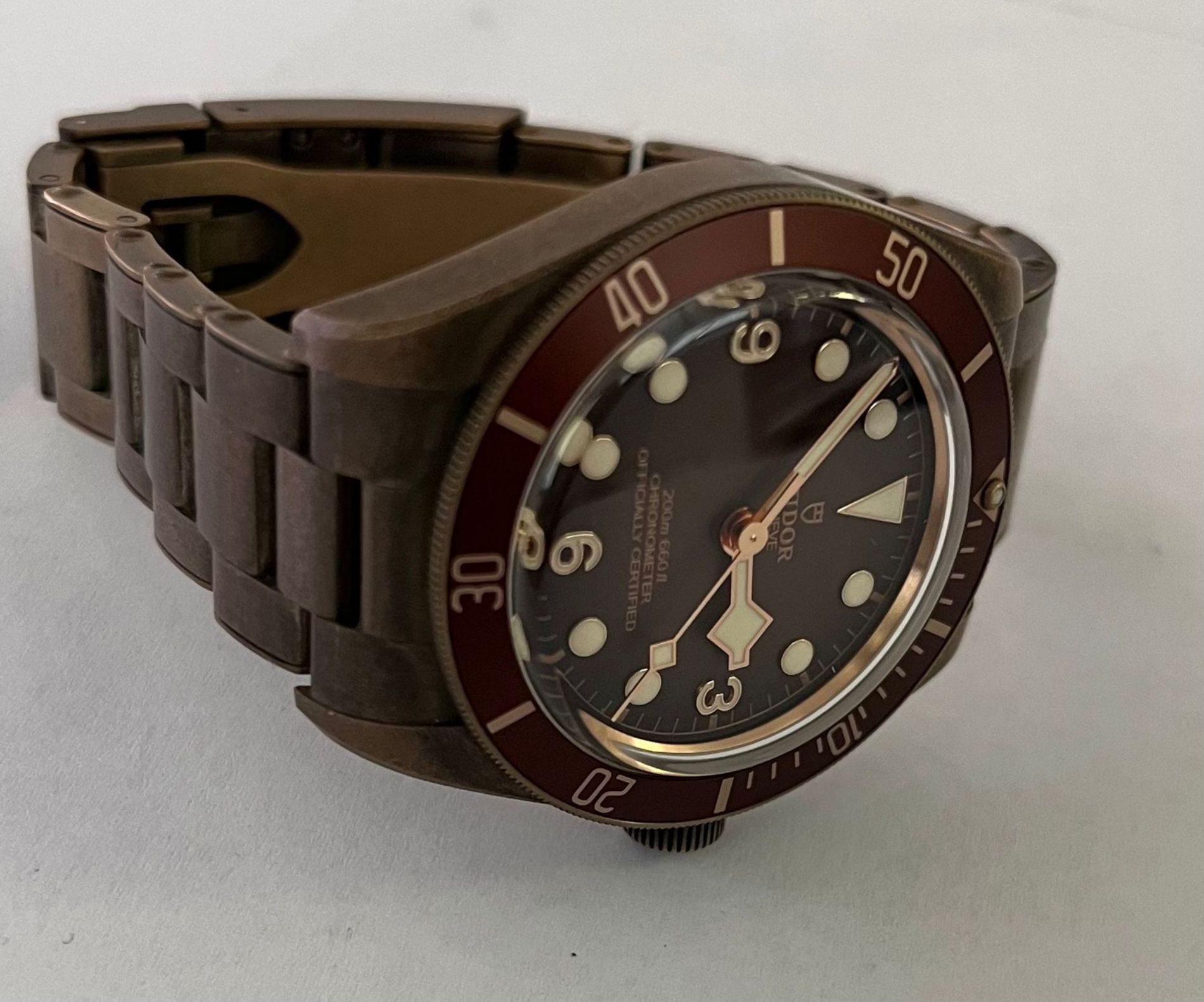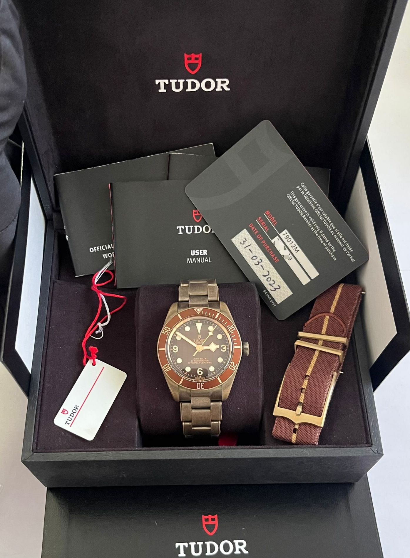Marca Tudor Modello (Orologio) Black Bay Bronze Numero di referenza 79012M Carica Automatico Materiale della cassa Bronzo Anno di produzione 2023 Condizione Ottimo (di seconda mano, segni di usura assenti o appena visibili) Corredo Con scatola originale e documenti originali Carica Automatico Cassa Materiale della cassa Bronzo Diametro 39 mm - COMMISSIONE D’ASTA 25%