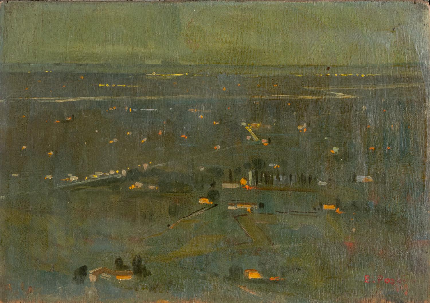 Edoardo Pazzini (Verucchio 1897 - Rimini 1967), "I fuochi di San Giuseppe visti da Verucchio".