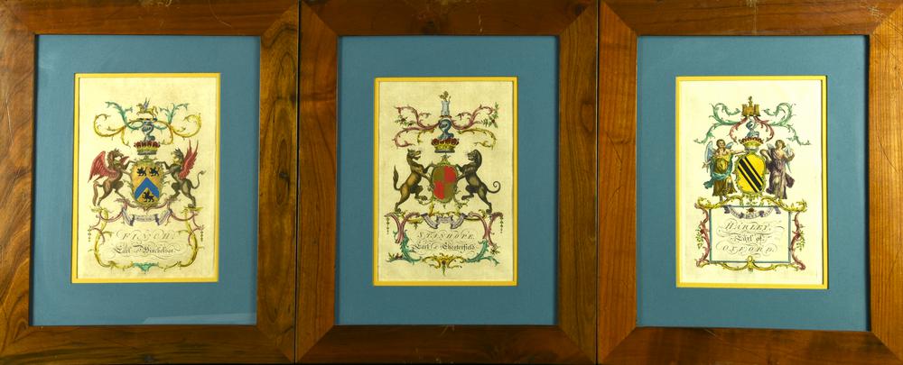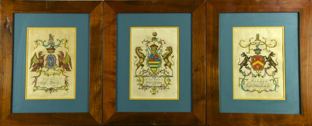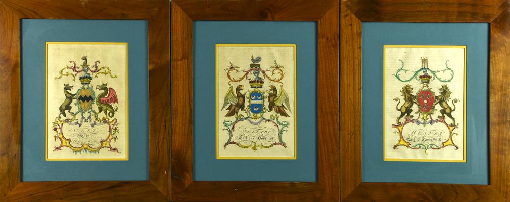 Scuola del XVIII secolo STEMMI ARALDICI DI FAMIGLIE INGLESI stampe a colori...