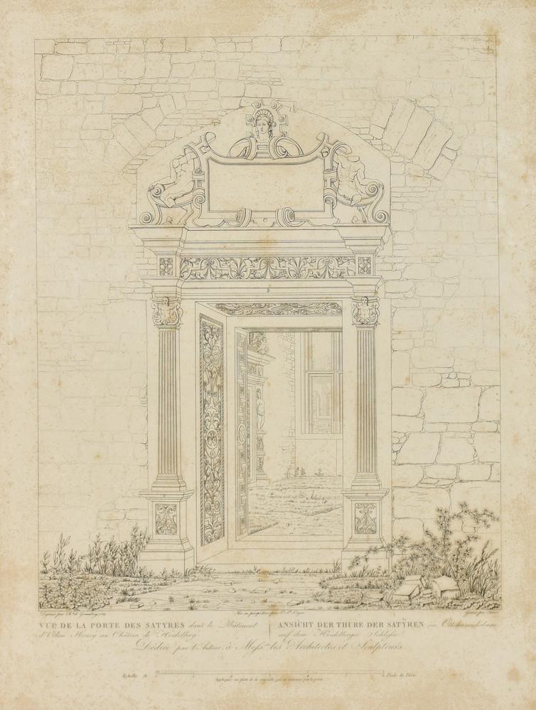 Ferier VUE DE LA PORTE DES SATYRES incisione su carta, cm 56x42 Francia, XIX...