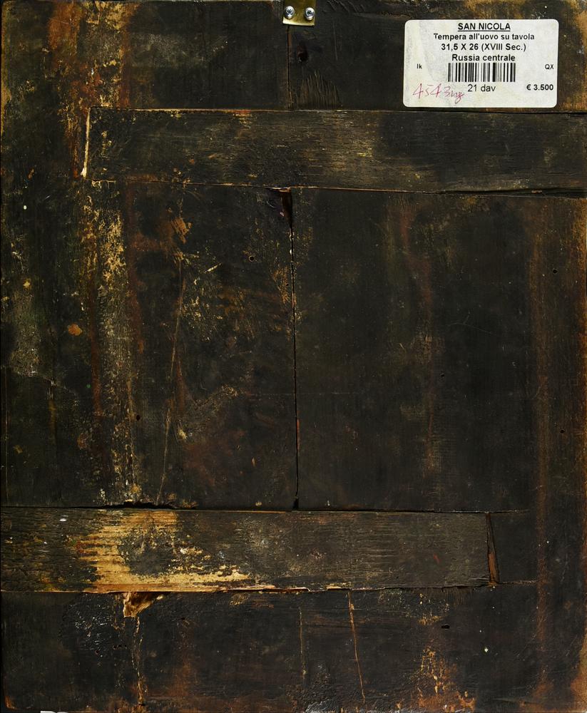 ICONA CON SAN NICOLA TAUMATURGO, fine XVIII secolo tempera su tavola con riza...