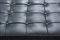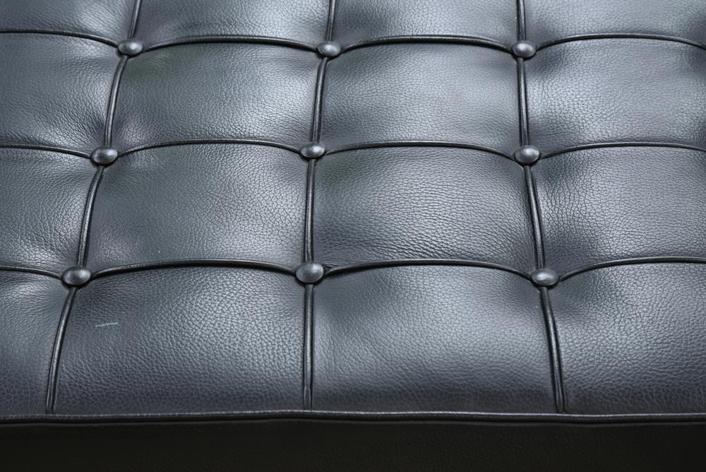 acciaio laccato, cinghie in cuoio, imbottitura in poliuretano e rivestimento in tessuto nero