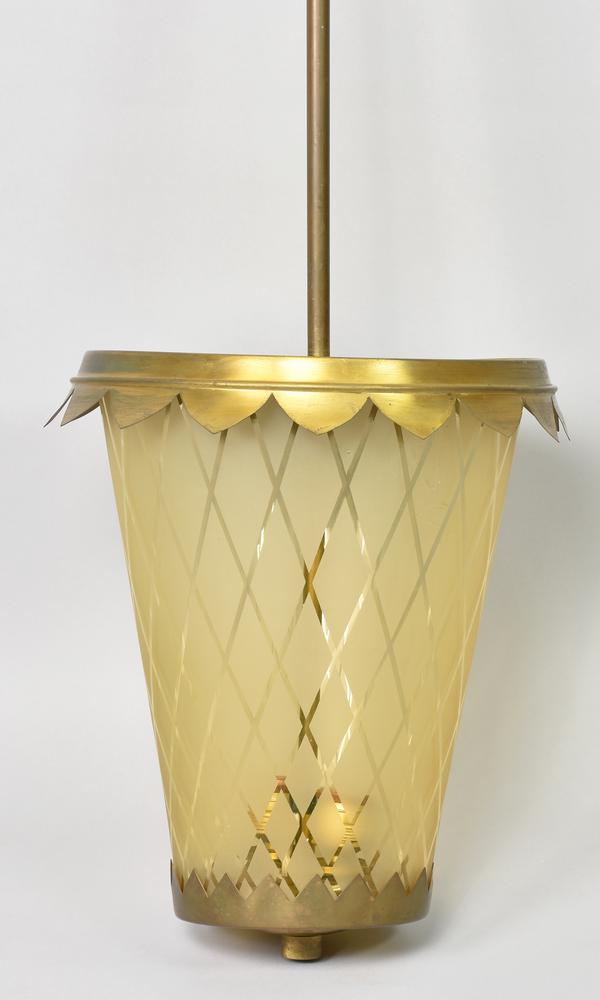 Fontana Arte LAMPADA A SOSPENSIONE A LANTERNA struttura in ottone, paralume...