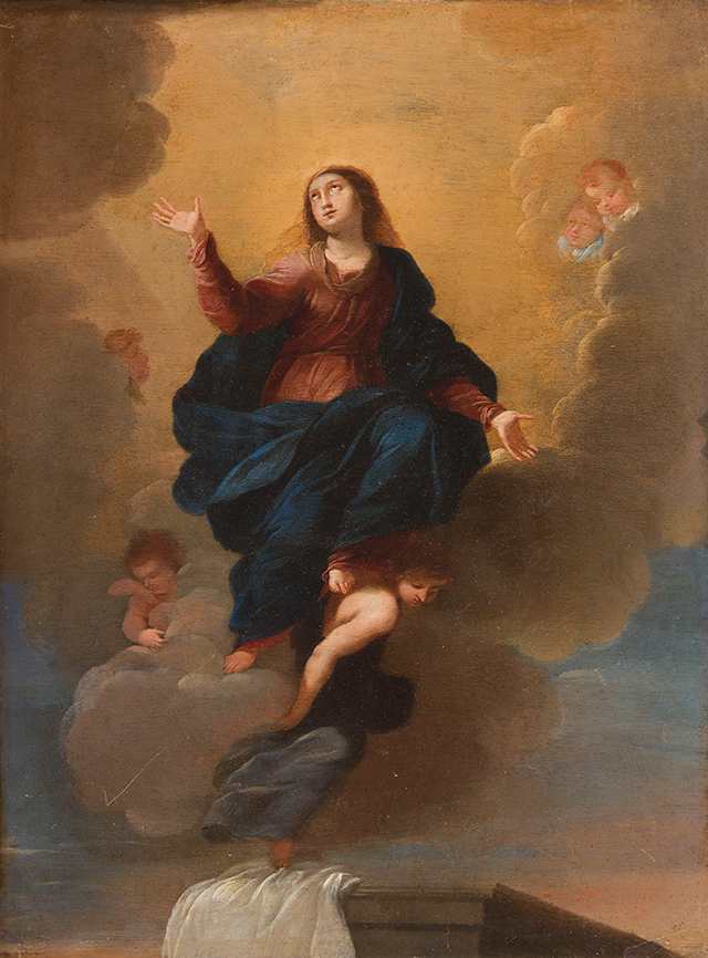 Scuola napoletana Prima metà del XVIII secolo La Vergine assunta olio su rame, 25,5 x 32,5