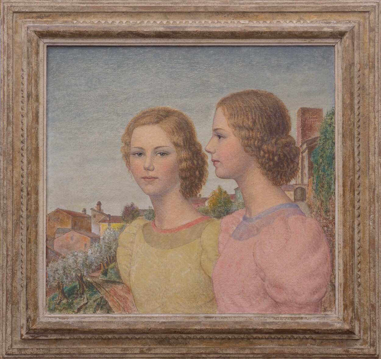 Carlo Parri (1897 - 1969) Sorelle 1940 olio su tela 70 x 76 cm. Firmato e...