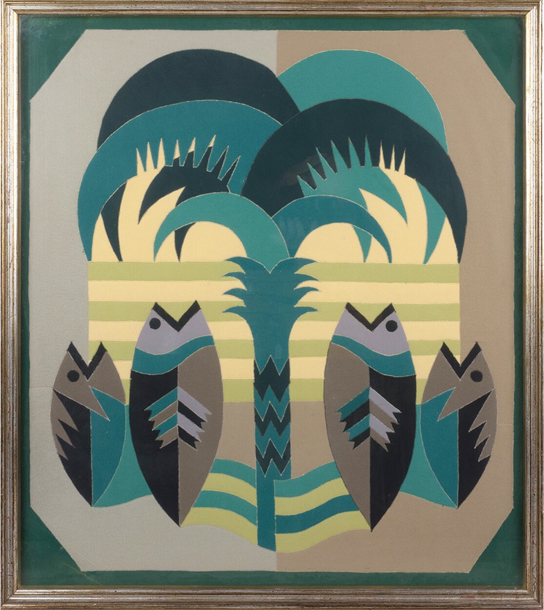 Fortunato Depero (1892 - 1960) Palma e Pesci 1937/38 tarsia di stoffe...