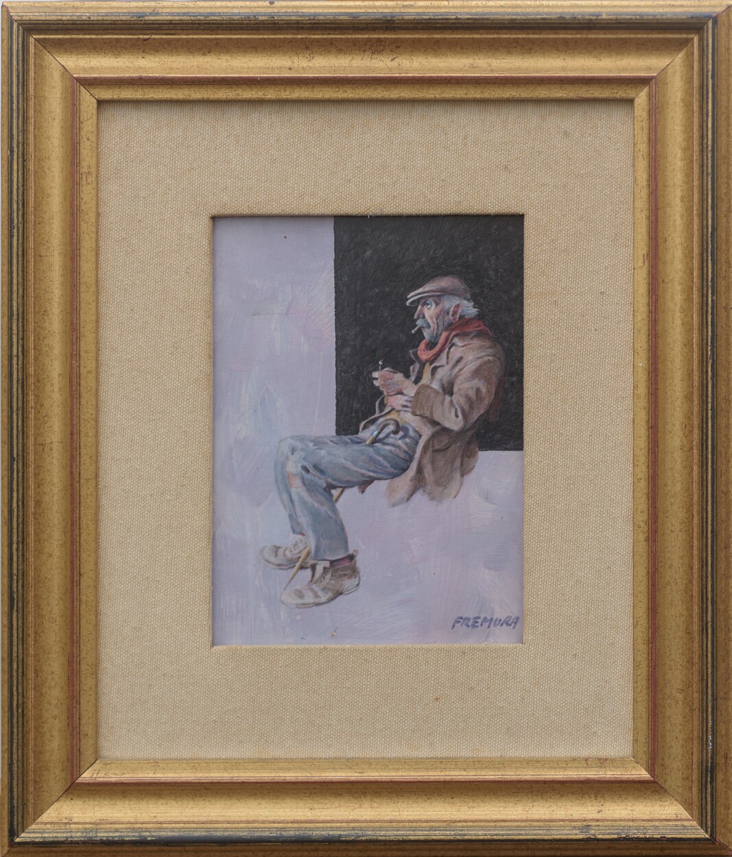 Alberto Fremura (1936 - 2023) Il fumatore olio su compensato 20 x 15 cm....