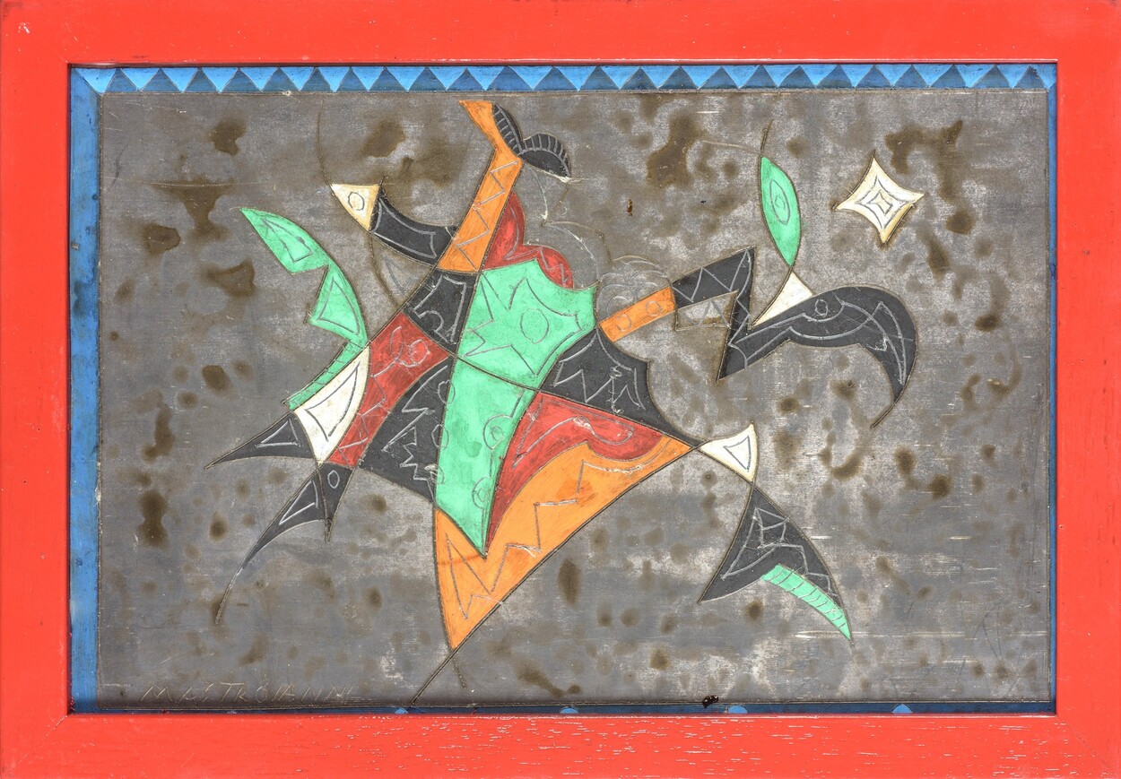 lastra di piombo dipinta e incisa 19 x 29 cm. Firma incisa sul fronte in basso a sinistra.