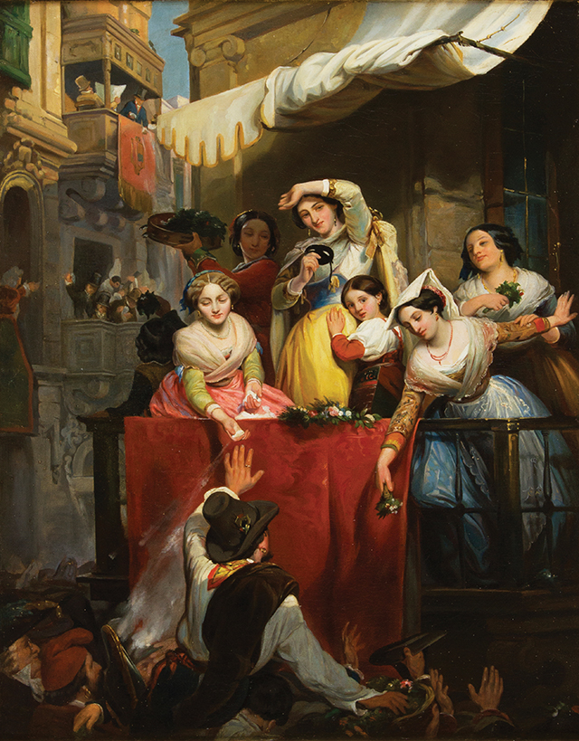 SCUOLA ROMANA Prima metà del XIX secolo Il trionfo del cavaliere nella corsa della ripresa dei Berberi durante il carnevale romano Olio su tela, cm.