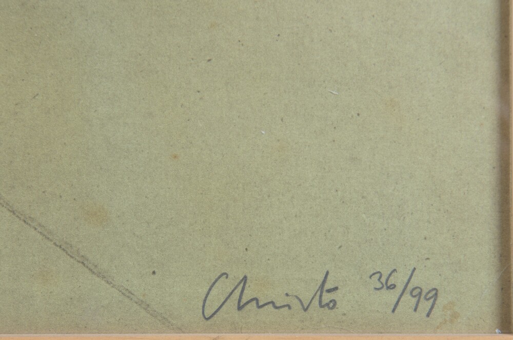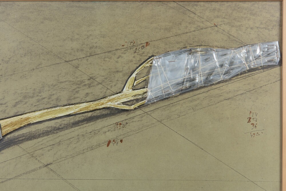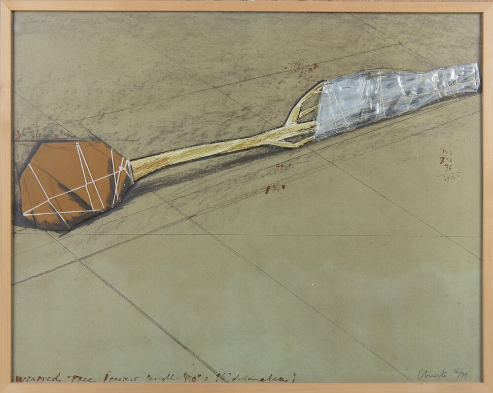 Christo (1935 - 2020) Wrapped tree (Progetto) 1979 litografia e collage,...