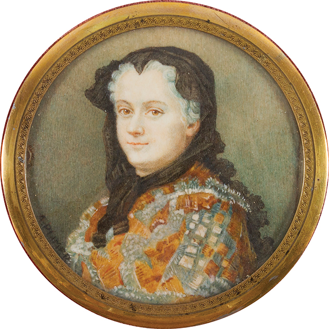 SCUOLA FRANCESE Seconda metà del XVIII secolo Miniatura con ritratto della regina di Francia Maria Lechinska Olio su tavola entro cornice in bronzo Diametro cm 25