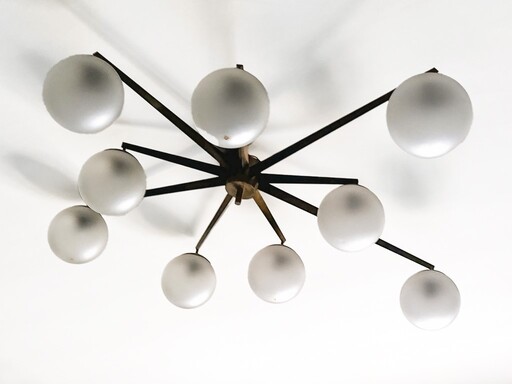 Angelo Lelli (1911 - 1979) Lampada a sospensione mod. "Stella a 9" anni '50 -...