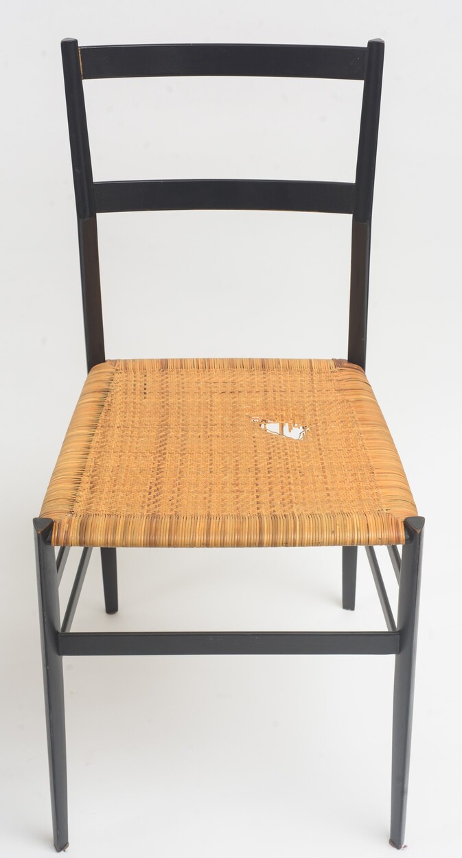 legno laccato e paglia di Vienna 82 x 41 x 39 cm. Per Cassina. Leggeri segni di usura. Una seduta danneggiata.