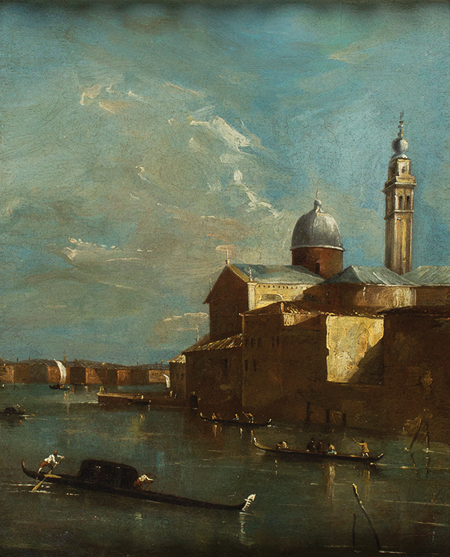FRANCESCO GUARDI Venezia 1712-1793 Veduta dell’isola di San Giorgio Olio su tela, cm 31 x 38