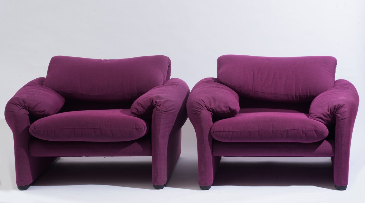 Vico Magistretti (1920 - 2006) Coppia di poltrone mod. "Maralunga" 1973...