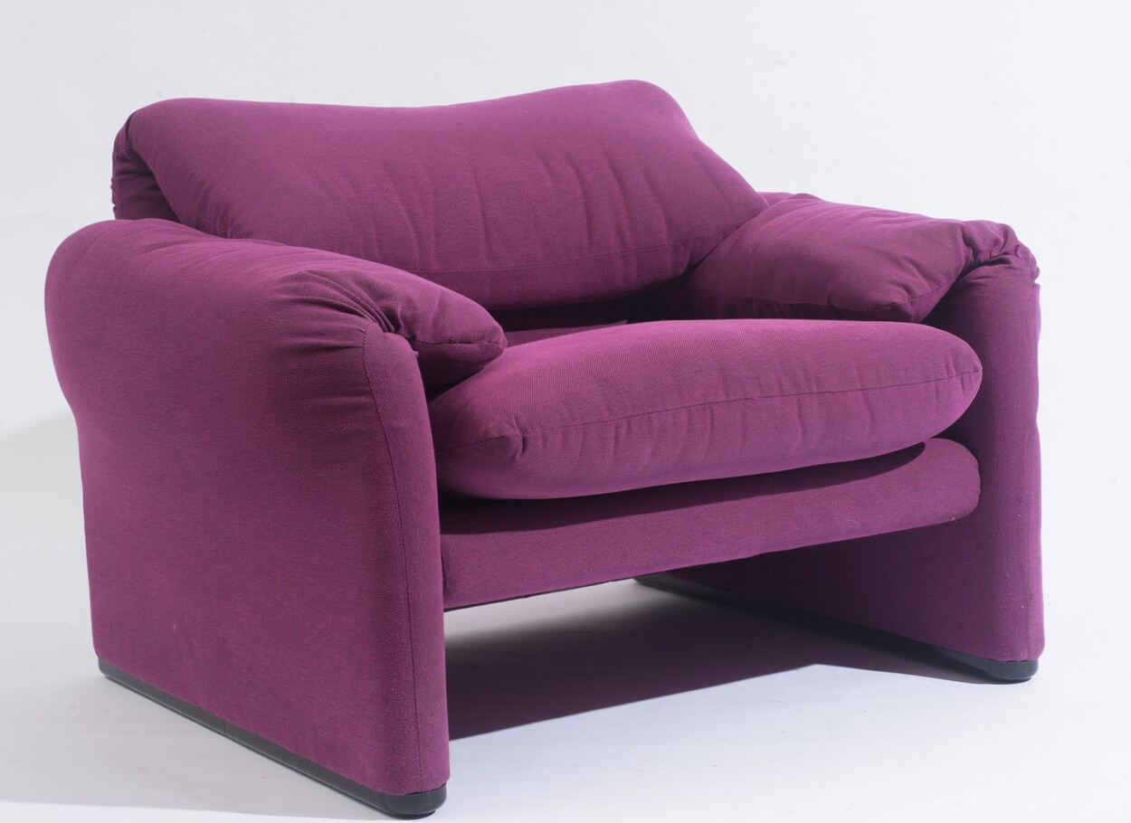 tessuto 70 x 110 x 75 cm. Per Cassina. Rivestimento in tessuto color viola.
