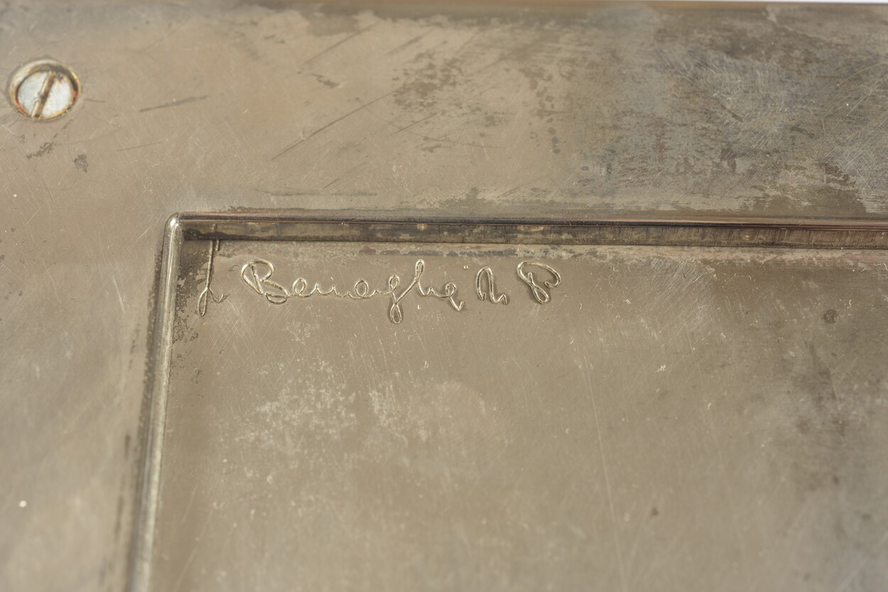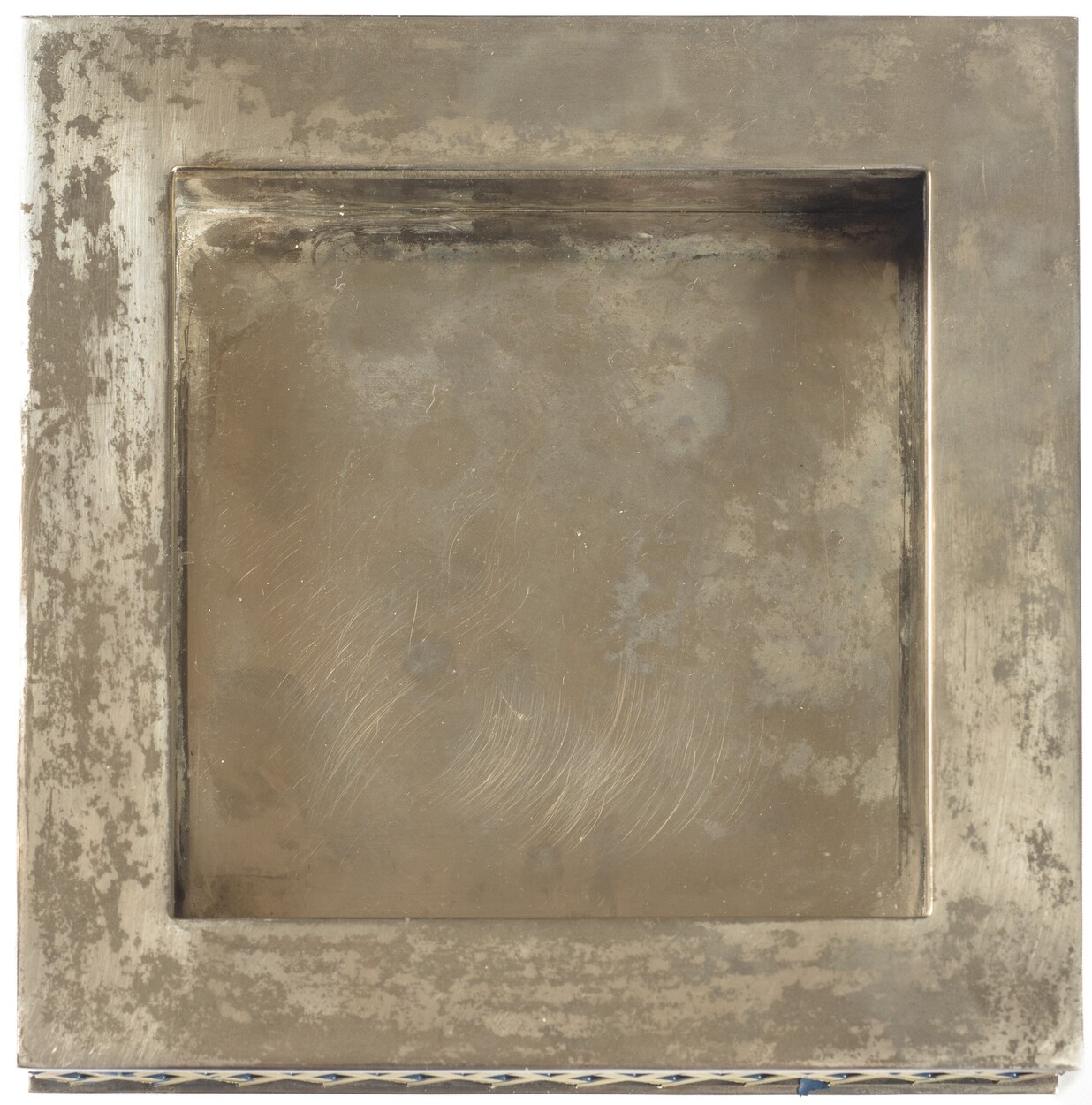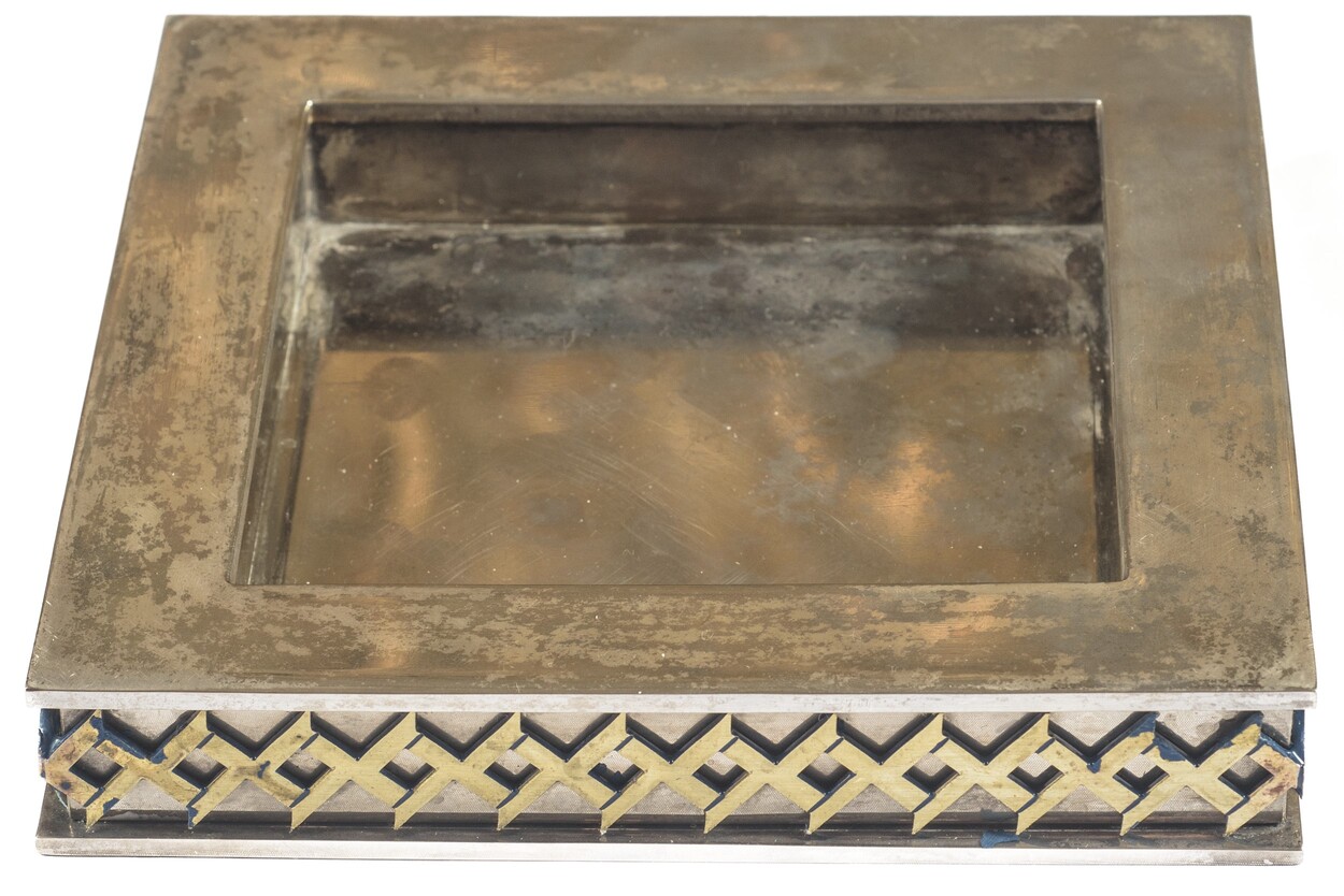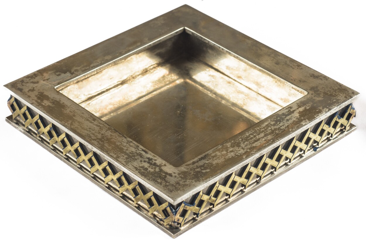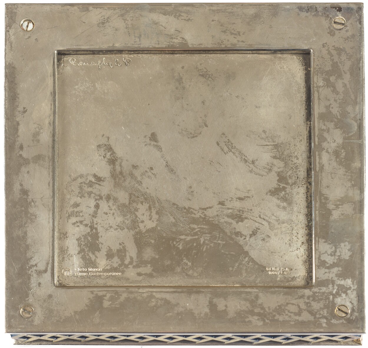 metallo argentato 3 x 18,50 x 18,50 cm. Della serie Forme Contemporanee - L. Benagia. Stampigliato al retro.