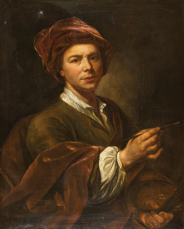 PAOLO BORRONI Boghera 1749 - 1819 Ritratto di pittore con turbante rosso Olio su tela, cm 84 x 69 Perizia scritta prof. Giancarlo Sestieri, Roma 2008 Il dipinto è da collocare, come sostiene Sestieri, nell’ambito della pittura realista lombarda della fine del settecento dove al gusto per la ritrattistica si unisce un’attenzione marcata ai particolari di genere, come si deduce dal vestito riccamente descritto di questo giovane pittore di cui è ignota l’identità. Il dipinto è in ottimo stato di conservazione e presenta solo una leggera vernice ossidata sulla superficie pittorica, caratterizzata quest’ultima da una fitta craquelè