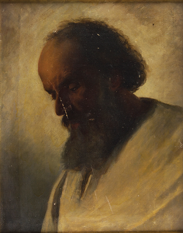 PITTORE NORD EUROPEO XIX SECOLO Uomo Olio su tela, cm 50 x 38 Non firmato Lievi difetti Provenienza Collezione privata Villa Baciocchi, Villa Vicentina