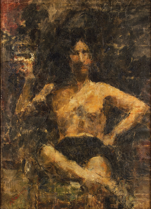 ANTONIO MANCINI Roma 1852 - Roma 1930 Il Brindisi Olio su tela cm 102 x 76 Firmato e con dedica sul retro: “ Al grande maestro Giuseppe Casciaro, al grande amico di zio - questo dipinto che lui solo capirà. Napol... otto XIV” Pubblicazioni: “Antonio Mancini” Palazzo della Permanente 16/09-27/10 1991, Milano. Catalogo della mostra pag. 33 in foto “ sala Mancini” collezione Casciaro. Archivio generale Antonio Mancini, dott. ssa Cinzia Virno.
