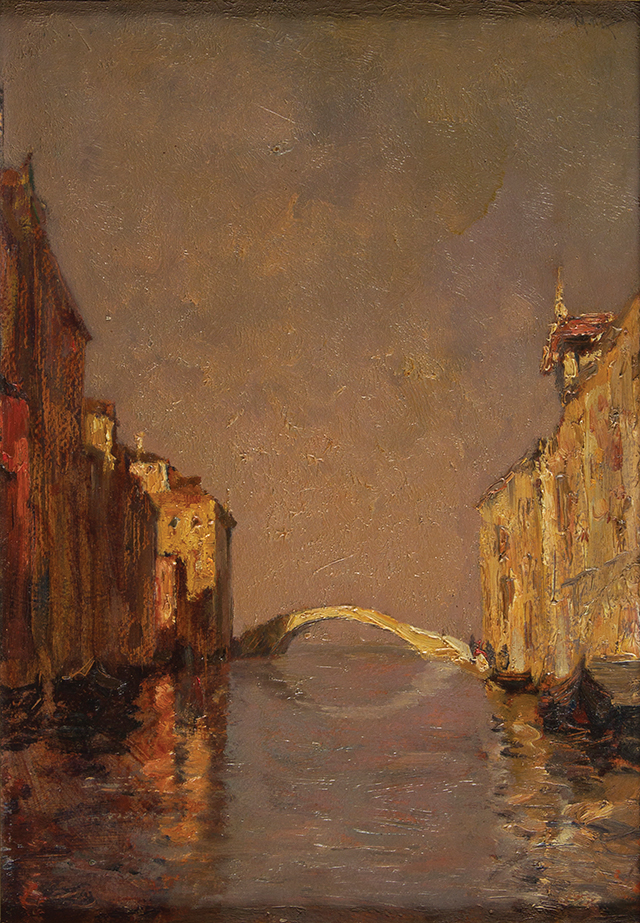 NELLO MOTTA Venezia 1901 - 1986 Rio dei Mendicanti Venezia Olio su tavoletta, cm 35 x 24 Firma e titolo al retro Provenienza Collezione Silvia Ciardi Villa Baciocchi, Villa Vicentina Collezione privata Villa Baciocchi, Villa Vicentina