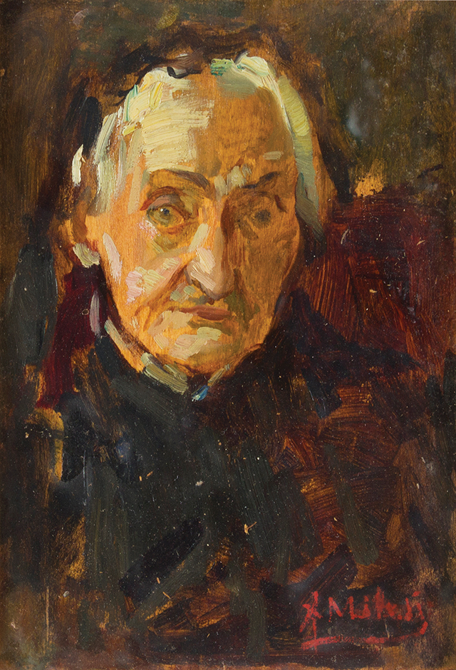 ALESSANDRO MILESI Venezia 1856 - 1945 Ritratto Olio su tavola, cm 22 x 15 Firma in basso a destra Firma e scritta “Dono a Silvia Ciardi” al retro Provenienza Collezione Ciardi Villa Baciocchi, Villa Vicentina Collezione privata Villa Baciocchi, Villa Vicentina