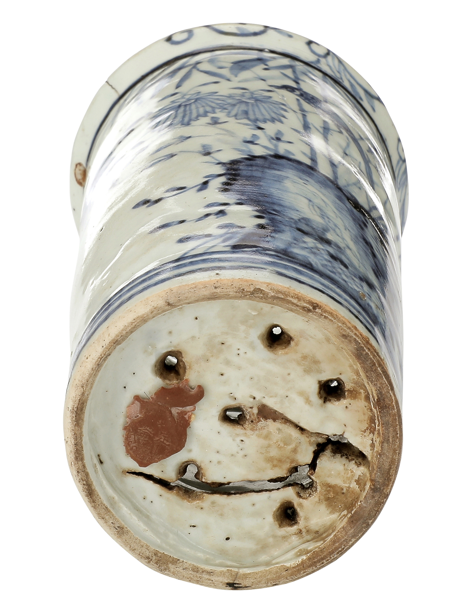 Cina. XX secolo Colino cilindrico con decoro di fiori e uccelli