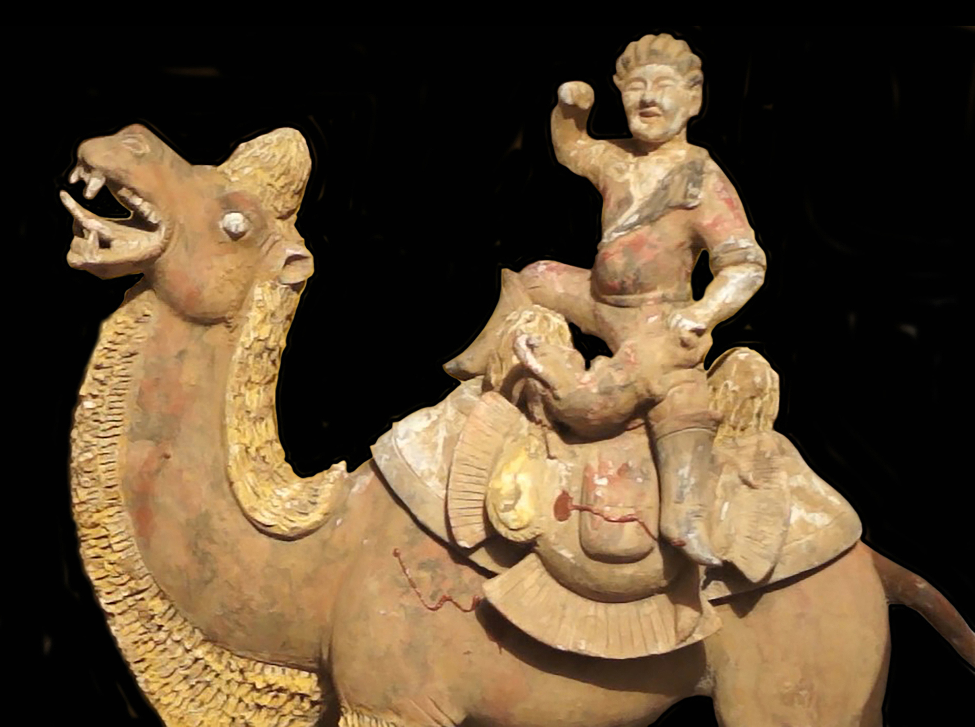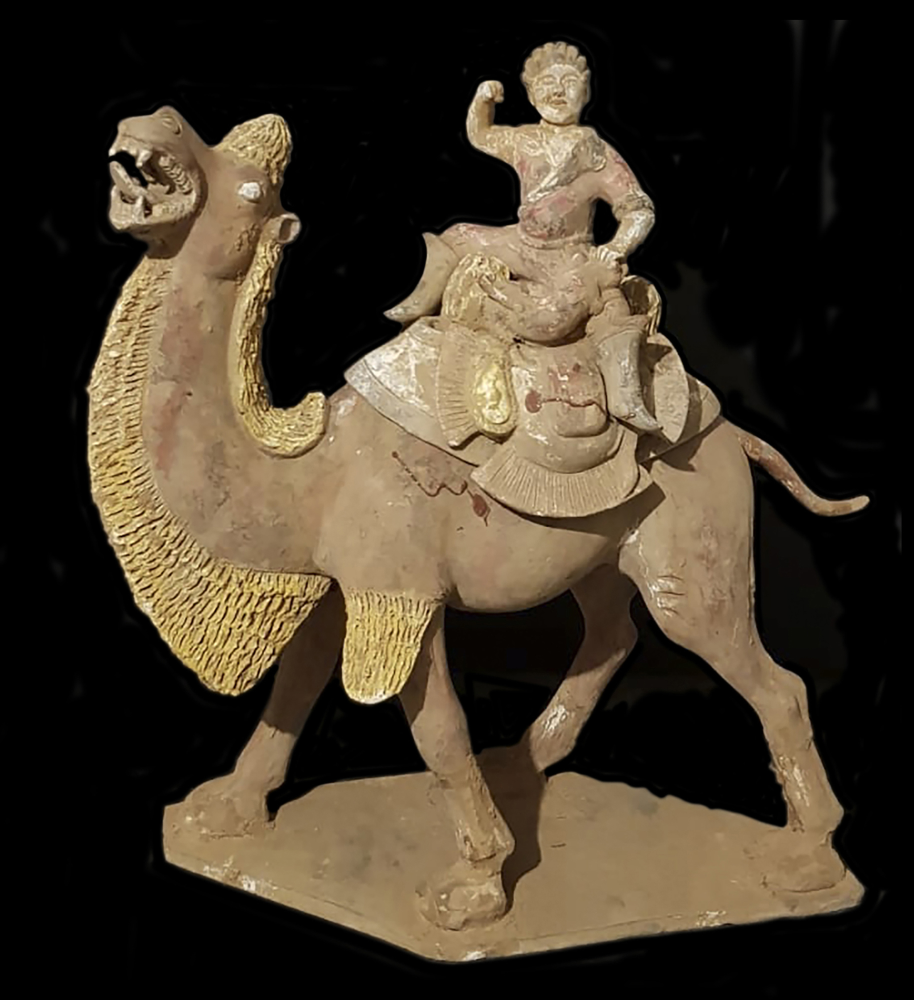 Cina Figura di cacciatore straniero su cammello battriano in stile Tang