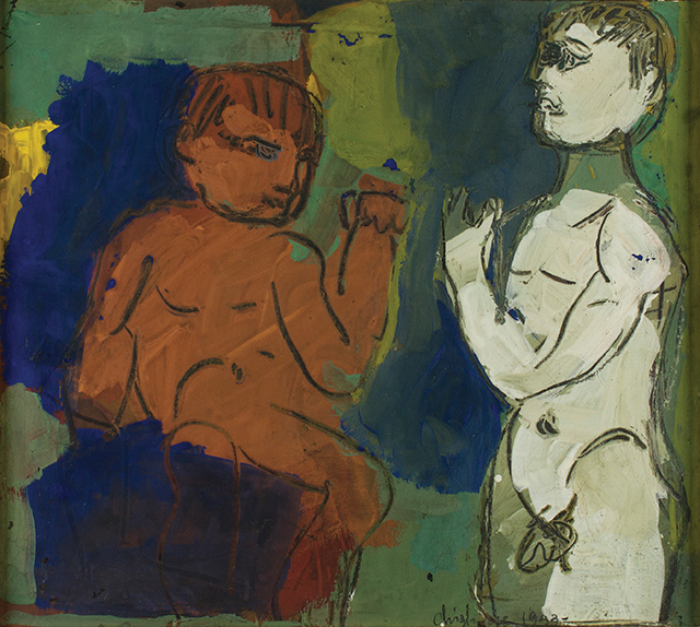 ALFREDO CHIGHINE Milano 1914 - Pisa 1974 Bambini che si lavano, 1953 Tempera...