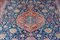Impianto con medaglione centrale lobato, in rosso su fondo blu riccamente decorato con motivi di palmette, nastri di nuvole e elementi floreali di grandi dimensioni.