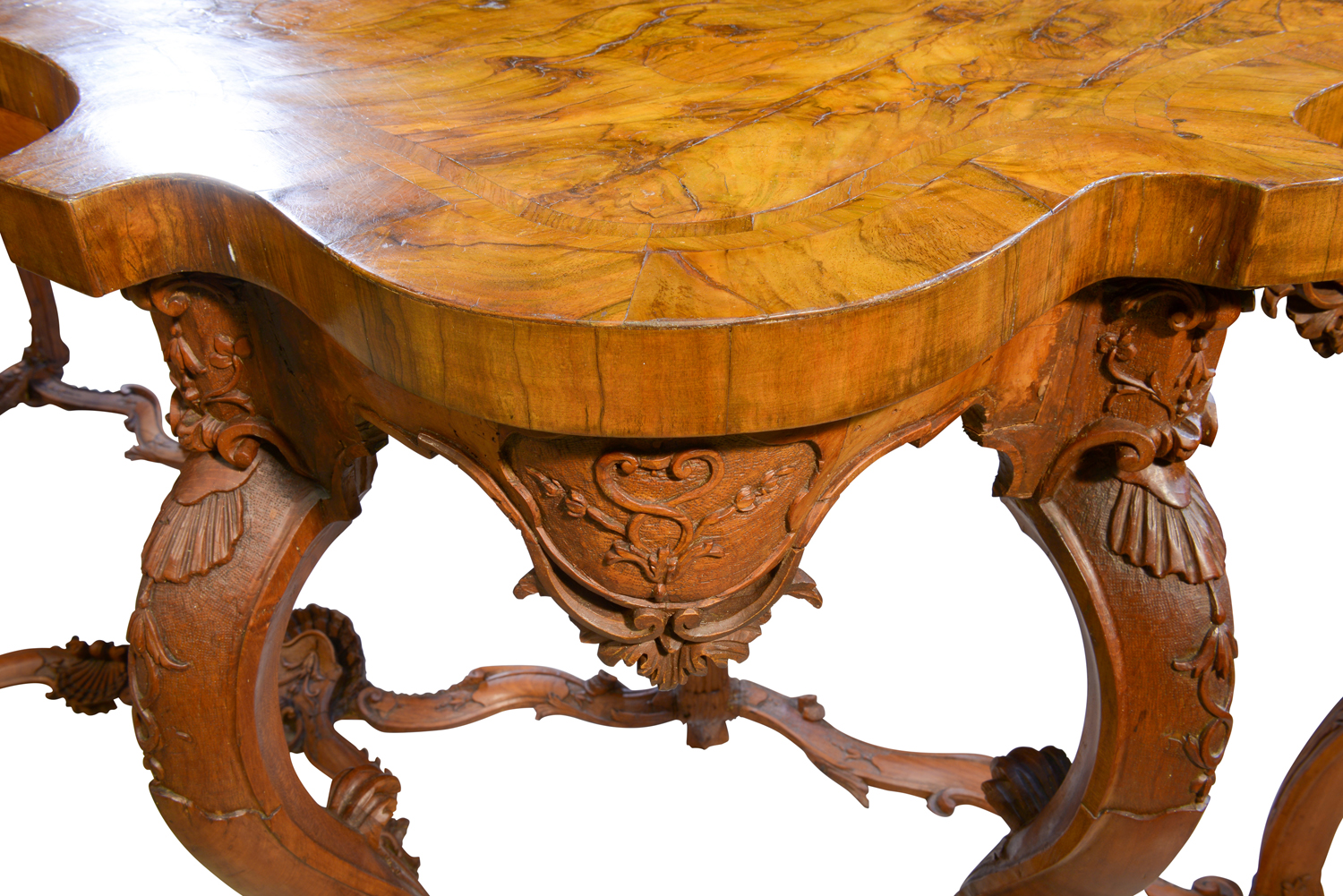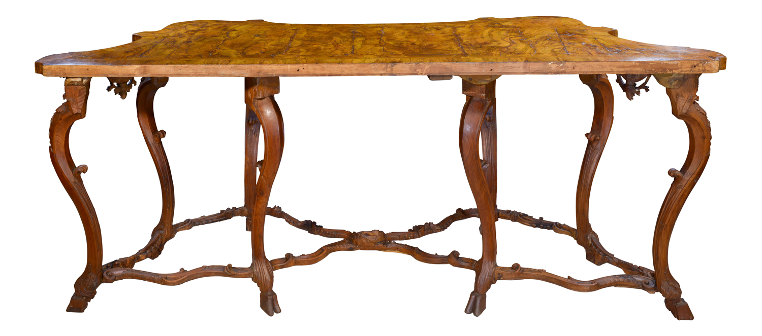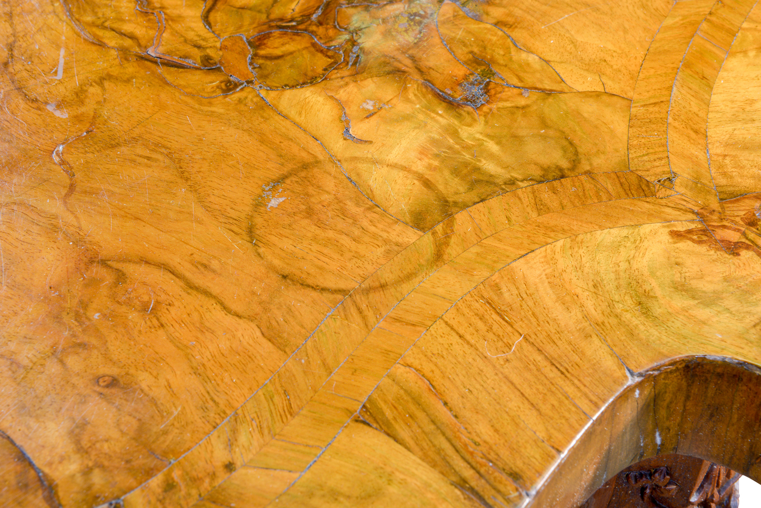 Legno di ciliegio italiano; piano con supporto in abete e impiallacciatura in noce e radica di noce
