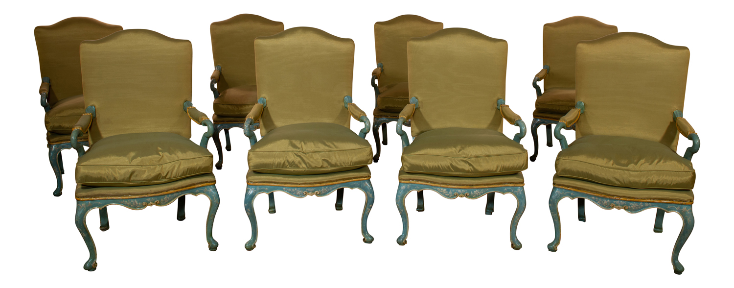 Veneto (Metà del XVIII secolo) Gruppo di otto poltrone con decori floreali