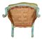 Alle poltrone è stata tolta la sandracca originale, ed ora si presentano di colore azzurro con decorazioni e rocailles in colore bianco.