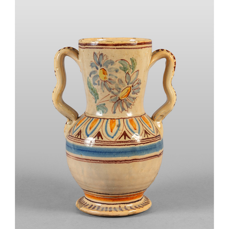 Anfora a due manici in maiolica decorata a motivi floreali Italia Meridionale sec.XIX