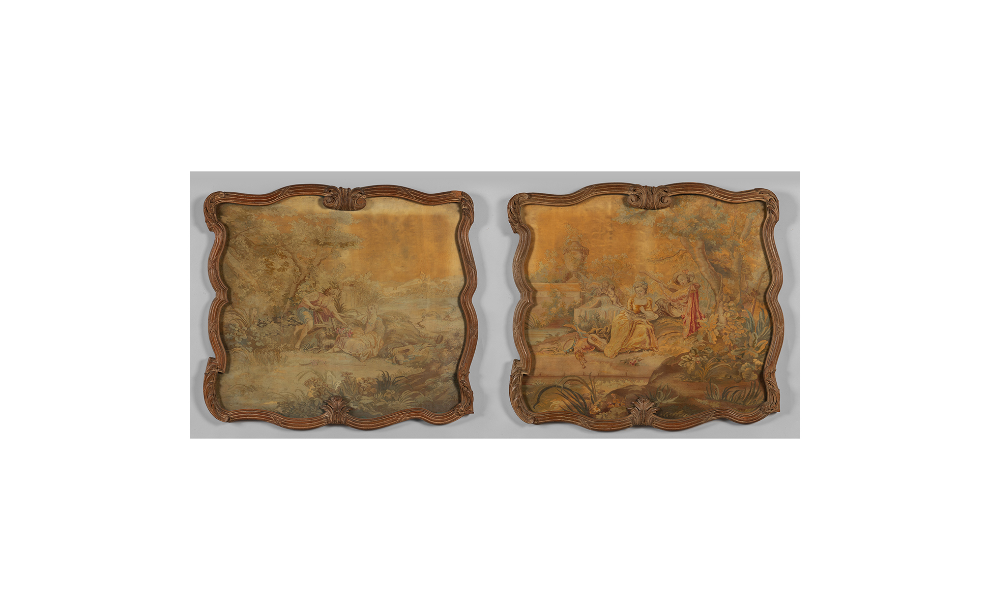 'Scene galanti' coppia di arazzi cornici sagomate Francia sec.XIX