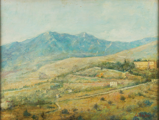 UMBERTO LILLONI Milano 1898-1980 Paesaggio, 1930 ca. Olio su tavoletta, cm 44,8 x 58,5 Firma in basso a destra A richiesta autentica su foto Archivio Lilloni