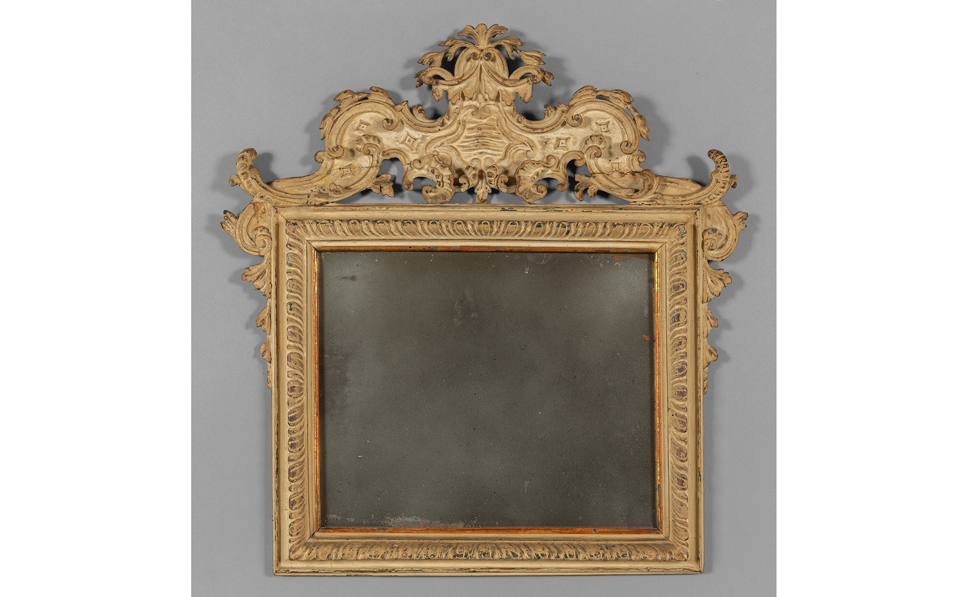 Specchierina Luigi XIV in legno laccato a fondo bianco I metà sec.XVIII
