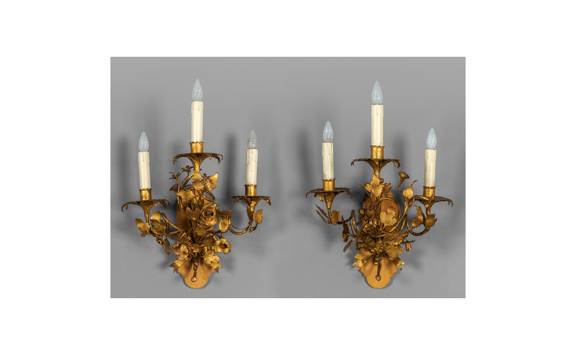Coppia di apliques in metallo dorato a tre luci Piemonte sec.XVIII