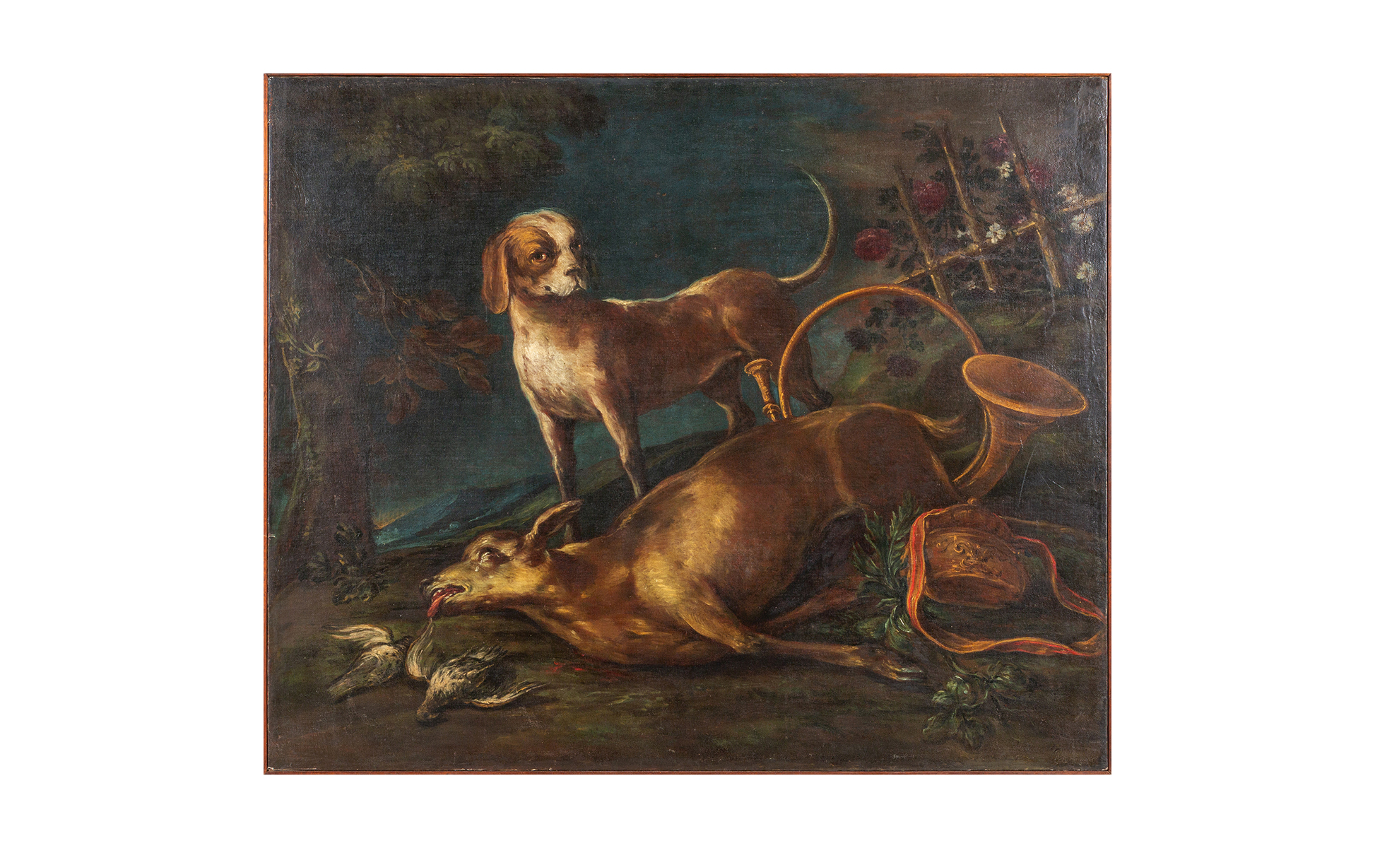 Precedente Lotto 0740 Successivo Aste Boetto - Via Mura dello Zerbino 10R, 16122 Genova ASTA DI ANTIQUARIATO Asta di Antiquariato mercoledì 18 giugno 2025 ore 15:00 (UTC +01:00) DIPINTO Scuola lombarda sec.XVIII 'Cane con cacciagione' oliocm. 132x110