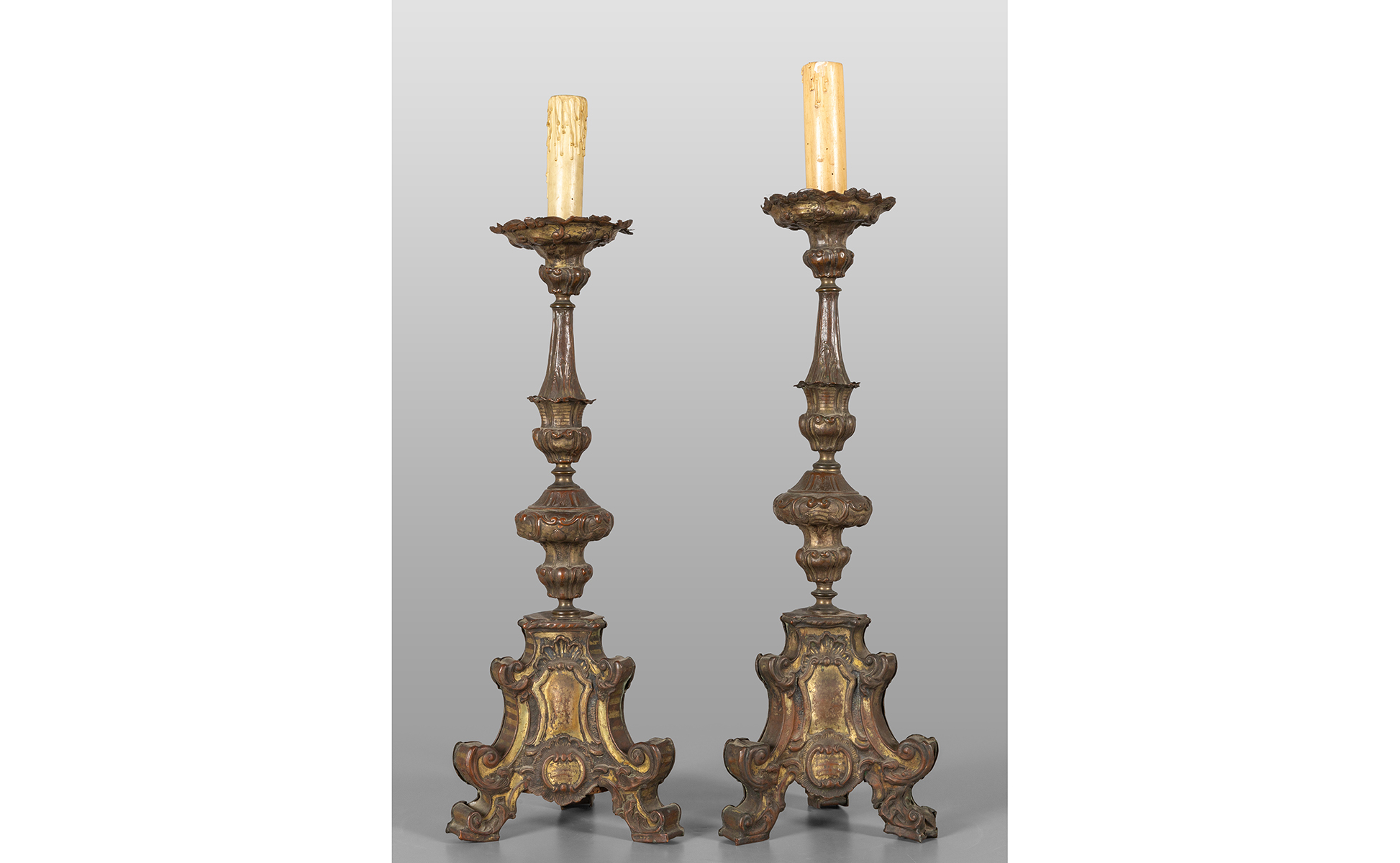 Precedente Lotto 0741 Successivo Aste Boetto - Via Mura dello Zerbino 10R, 16122 Genova ASTA DI ANTIQUARIATO Asta di Antiquariato mercoledì 18 giugno 2025 ore 15:00 (UTC +01:00) OGGETTISTICA Due candelieri in lamierino Luigi XIV inizi sec.XVIIIh.cm.90
