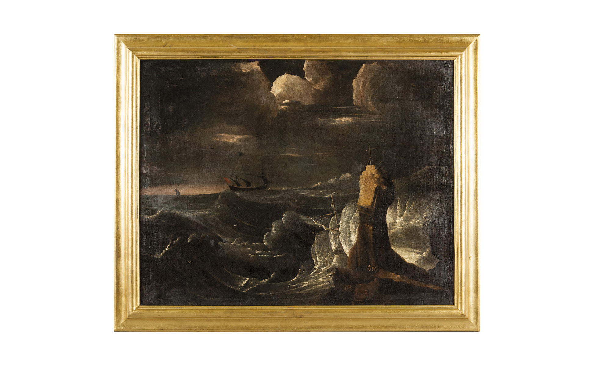 P.Muller (attribuito) 'La flotta olandese dispersa dopo una battaglia in mare agitato' olio