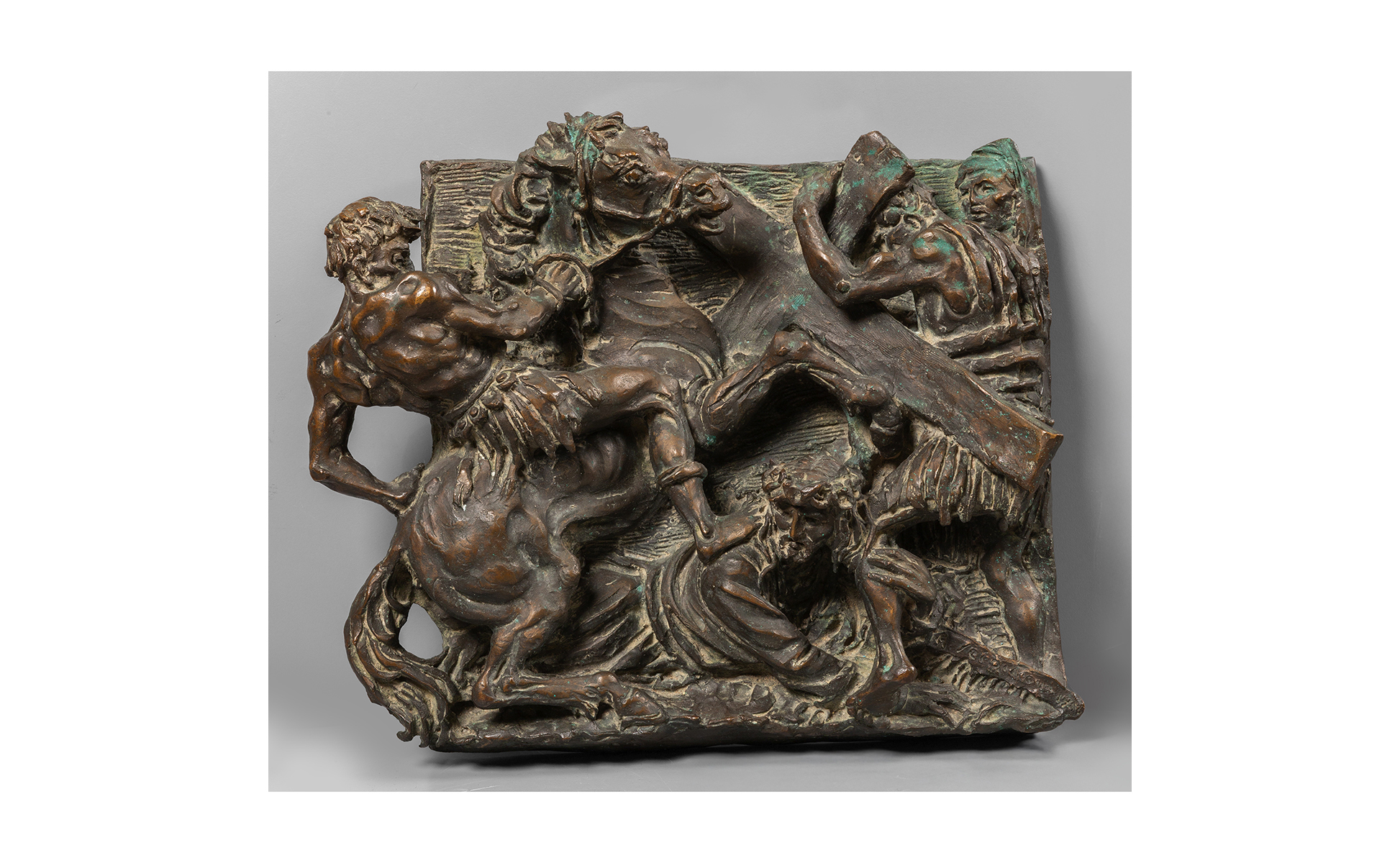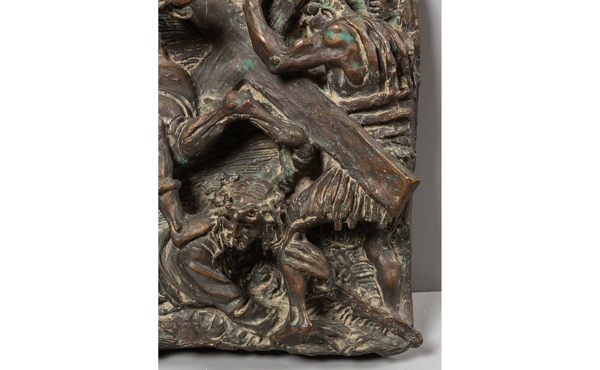 Via Crucis altorilievo in bronzo f.to in b. a ds. metà sec.XX