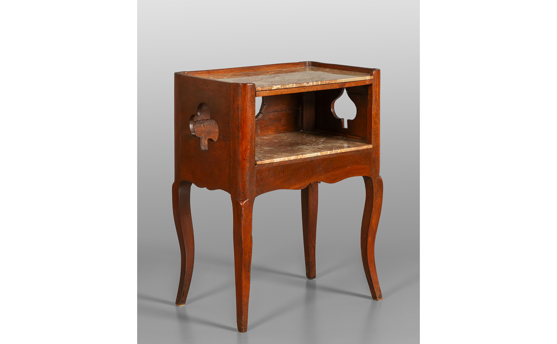 Comodino Luigi XIV a giorno in noce un cassetto laterale Piemonte sec.XVIII