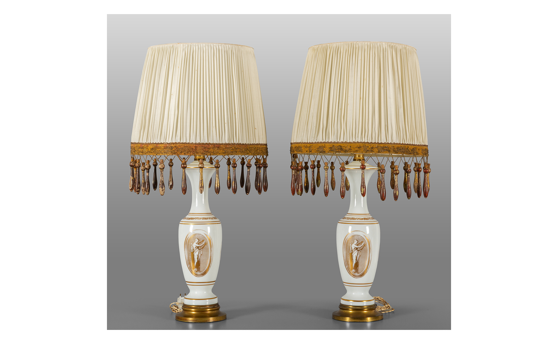 Coppia di lampade in opaline decorate con profili dorati sec.XX