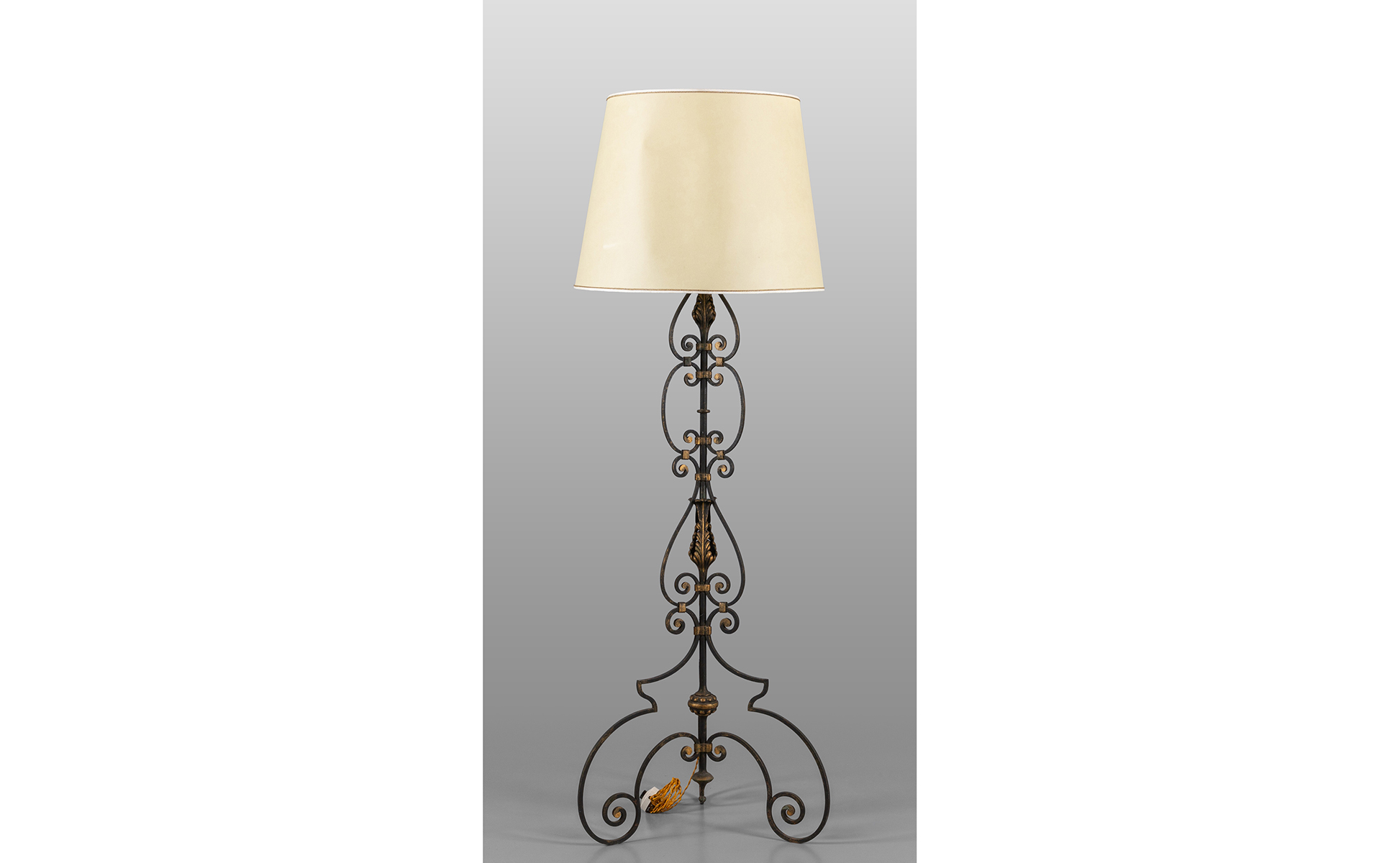 Precedente Lotto 0857 Successivo Aste Boetto - Via Mura dello Zerbino 10R, 16122 Genova ASTA DI ANTIQUARIATO Asta di Antiquariato mercoledì 18 giugno 2025 ore 15:00 (UTC +01:00) OGGETTISTICA Piantana in ferro battuto con profili doratih.to.cm.175