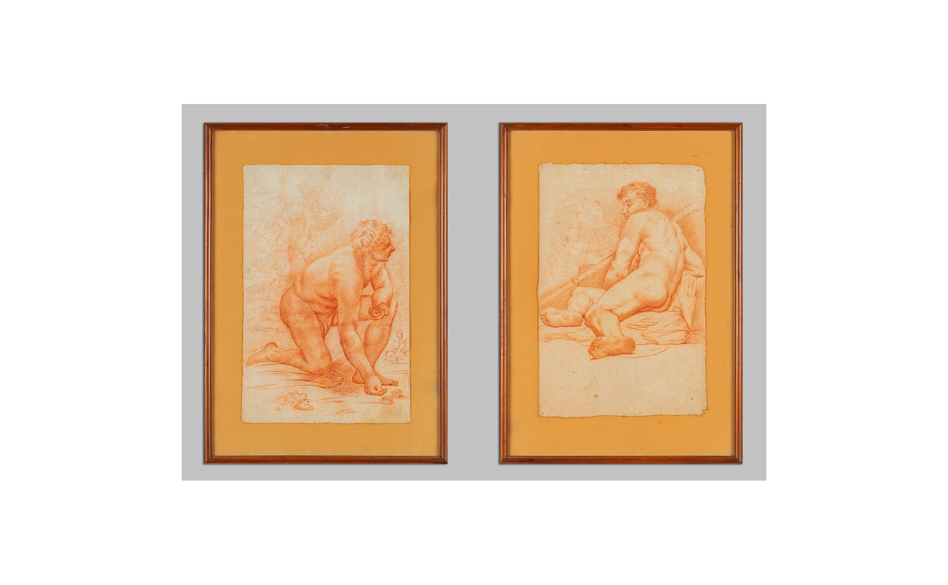 'Giocatore di dadi' e 'Uomo assiso' coppia di disegni a sanguigna sec.XVIII/XIX